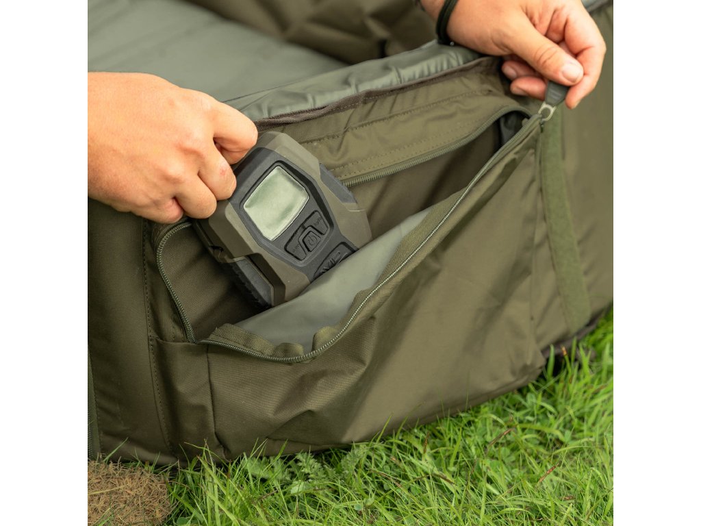 - Velká kapsa na zip pro ukládání nezbytného vybavení na péči o ryby