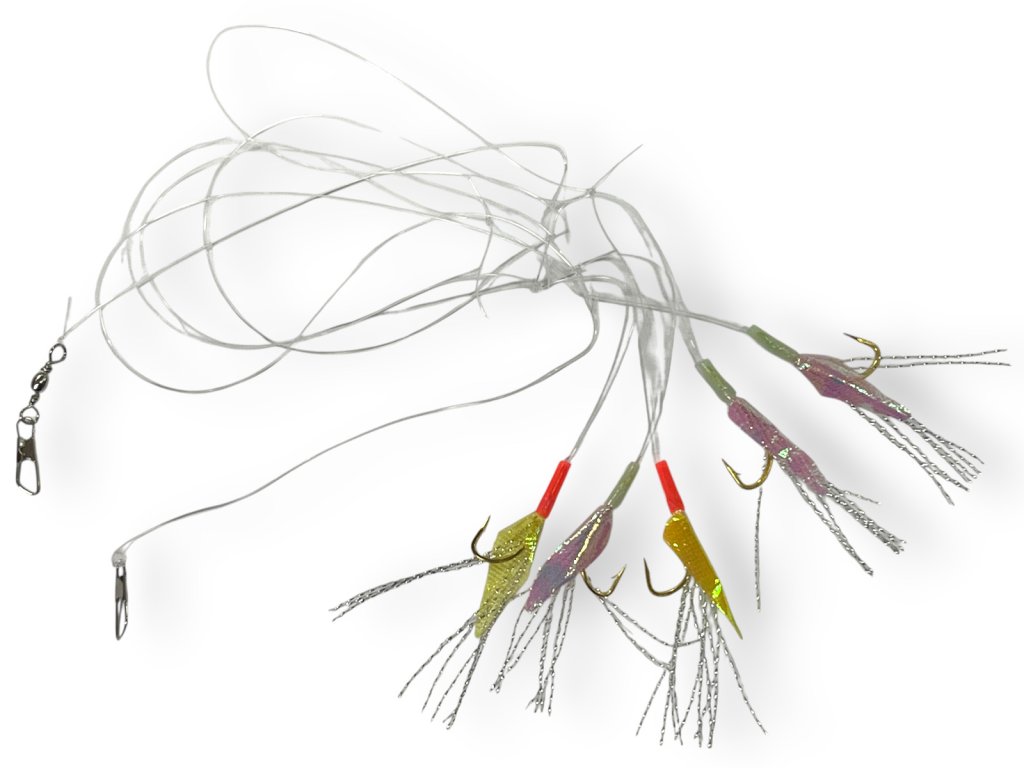 Mořský návazec určený k lovu menších ryb, jako jsou jednoskvrnky. Osazen háčky velikosti 3/0, výraznými fosforeskujícími korálky, pevným obratlíkem a karabinou pro rychlou...
