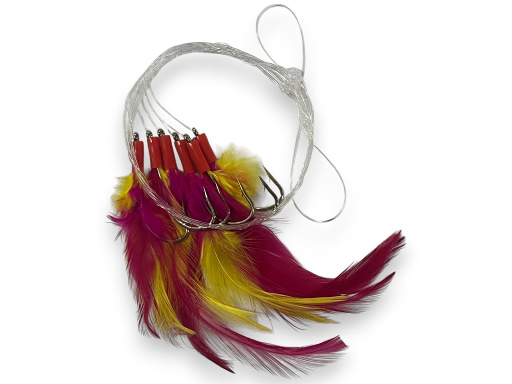 Mořský návazec určený k lovu menších ryb, jako jsou jednoskvrnky. Osazen háčky velikosti 3/0, výraznými fosforeskujícími korálky, pevným obratlíkem a karabinou pro rychlou...