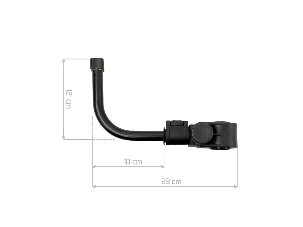 Dlouhé a nastavitelné feederové rameno s kloubovým mechanismem, ideální pro přesné uložení prutu v různých podmínkách.