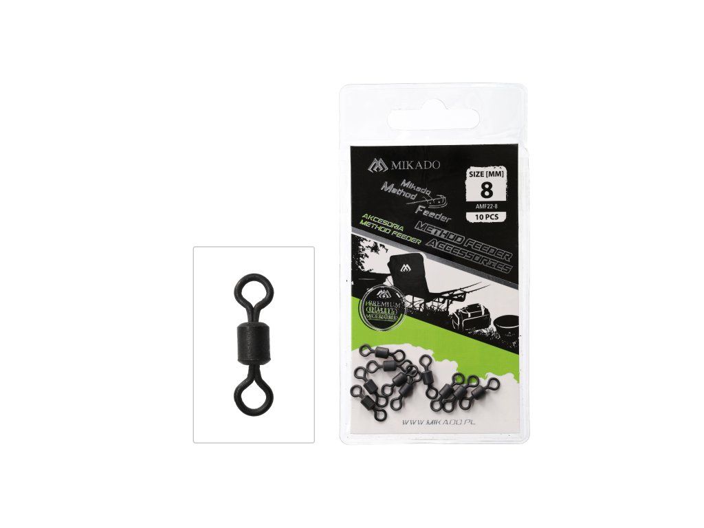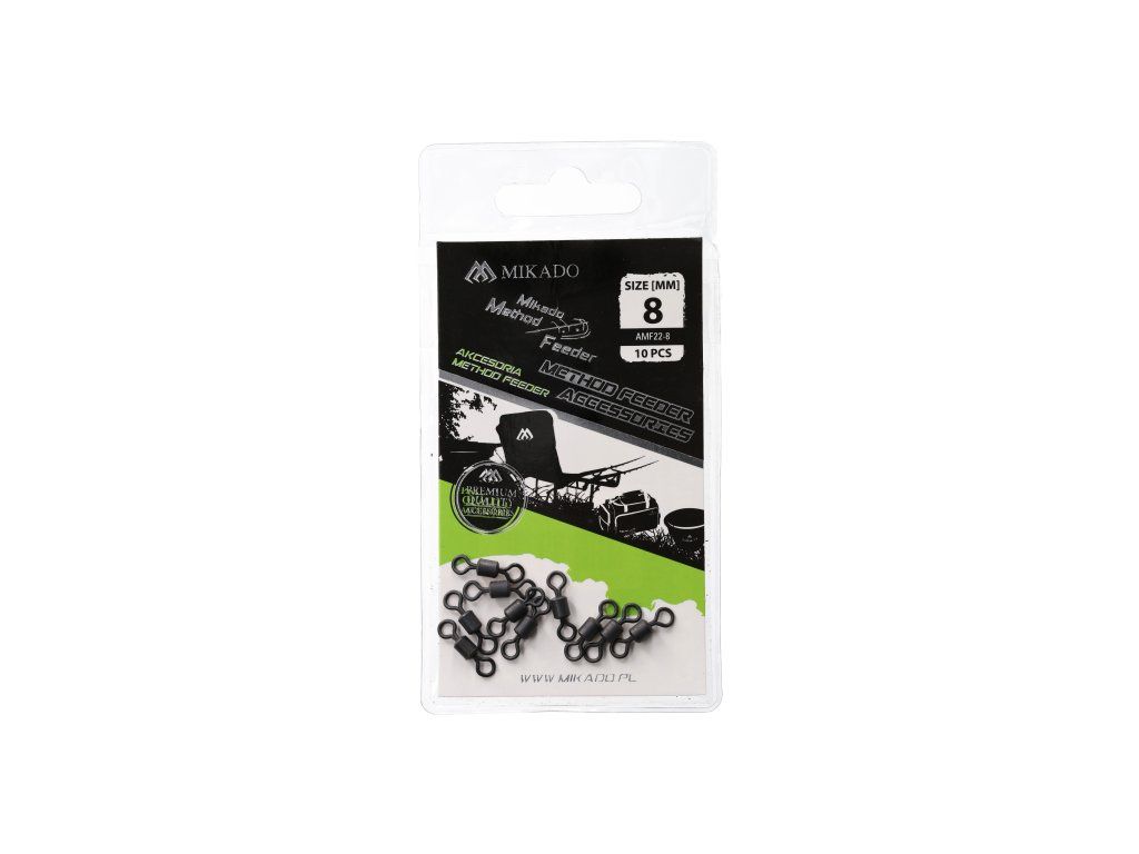 Mikado obratlík Method Feeder ve velikosti 8 je navržen pro použití v zátěžových feederových sestavách. Díky své konstrukci zajišťuje pevné a bezpečné spojení jednotlivých částí montáže a zároveň minimalizuje kroucení vlasce během nahazování i zdolávání ryby.