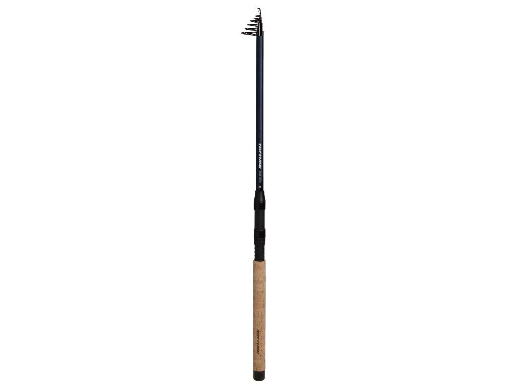Silnější teleskopický prut pro lov s těžšími splávky, lehkou živou nástrahou nebo na dno, s lehkým uhlíkovým blankem a korkovou rukojetí.