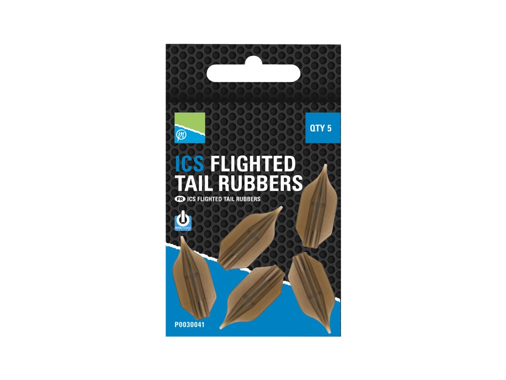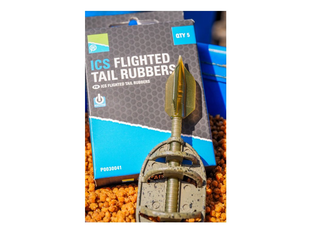 Preston Innovations ICS Flighted Tail Rubbers jsou nahazovací převleky navržené pro použití s komponenty z populárního systému ICS. Oproti klasickým převlekům mají speciální tvar s malými letkami, které stabilizují krmítko během letu. Díky tomu drží montáž lépe směr při náhozu, což umožňuje přesnější a delší hody – ideální zejména při lovu na větší vzdálenosti.