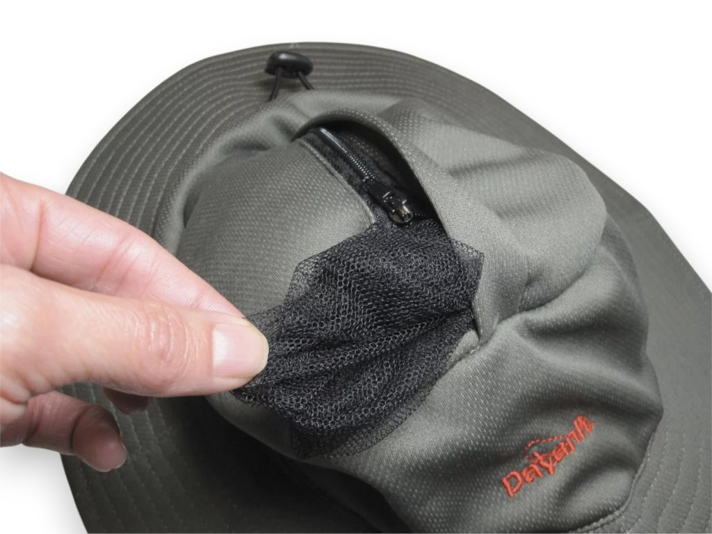 - Integrovaná moskytiéra vo vrchnej časti klobúka: Chráni pred hmyzom.
