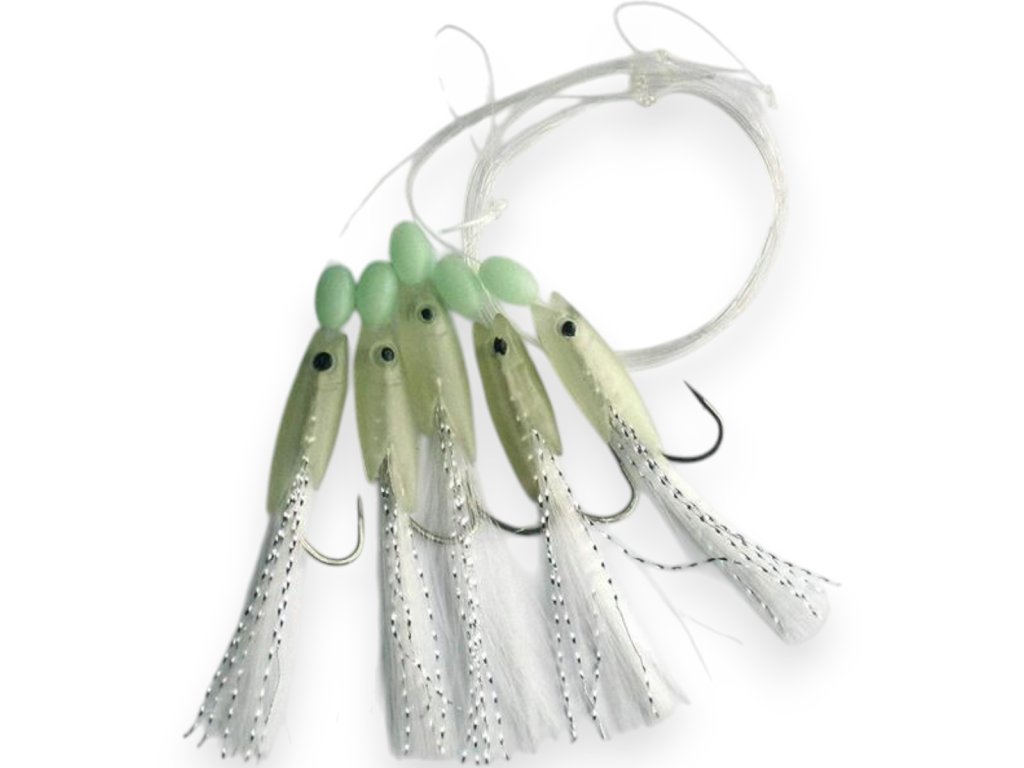 Morský nadväzec určený na lov menších rýb, ako sú jednoskvrnky. Osadený háčikmi veľkosti 3/0, výraznými fosforeskujúcimi korálkami, pevným obratlíkom a karabínou na rýchlu...