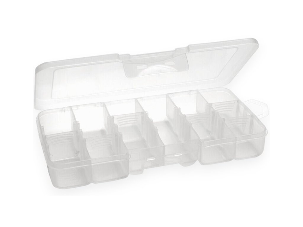 Krabička je ideálna na uchovávanie rôznych drobných rybárskych pomôcok. Vďaka variabilným priehradkám si môžete usporiadať vybavenie podľa potreby, čo zabezpečuje rýchly a efektívny prístup.