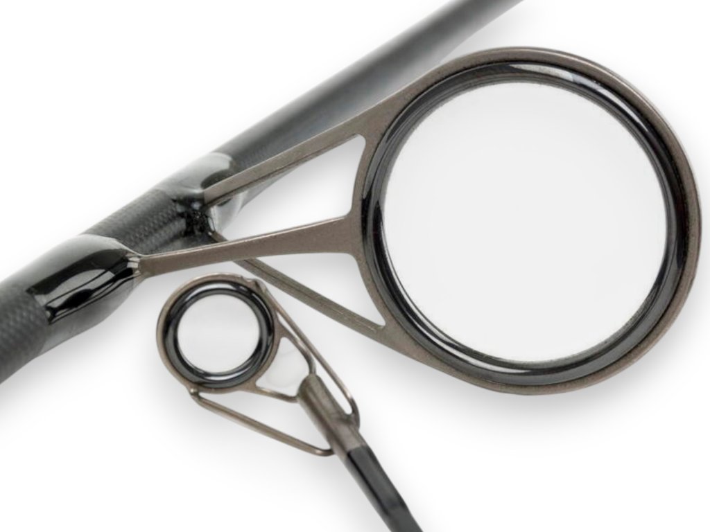 • Očka Century SiC: Prúty sú vybavené očkami Century SiC s 50 konfiguráciou, ktoré sú vyviazané čiernou niťou v farbe Jet black a potiahnuté niekoľkými vrstvami dvousložkového epoxidového laku. Táto kombinácia zaisťuje dlhú životnosť očiek a ich odolnosť proti opotrebovaniu.